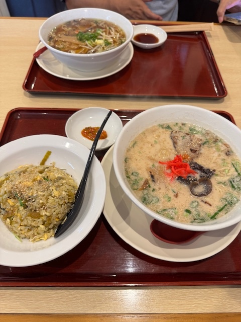 ランチ 今日はランチお蕎麦食べる予定がお店が臨時休業でラーメン屋さんへ。このお店では初めての九州セットで博多ラーメンと高菜チャーハン。どちらも美味しかったけど、お腹いっぱいでチャーハンは旦那様に手伝ってもらいました。夜は友達5人で飲み会🍺こちらも初めてのお店で楽しみ♡