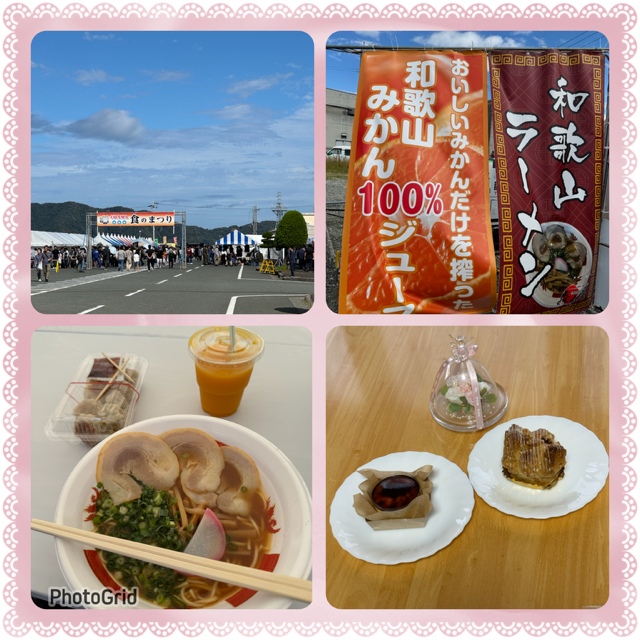 食のまつり 昨日は地元の食のイベントに行ってきました😊去年食べて美味しかった和歌山ラーメンと、みかんジュースに博多名物のひと口餃子。(餃子は旦那様と半分こ)どれも美味しかった〜♡帰宅してから他県から来てた洋菓子屋さんのスイーツ。旦那様のマロンパイと私のバスクチーズケーキもGood🧡