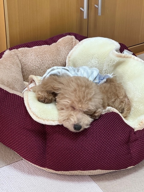 2代目 UPするの少し勇気いったけど…2代目ワンコ、お迎えしました。クリームのトイプードルで男の子です(*^^*)先週末にブリーダーさんの所にお迎え行ってました。名前は『かなた』です。よろしくお願いします♡